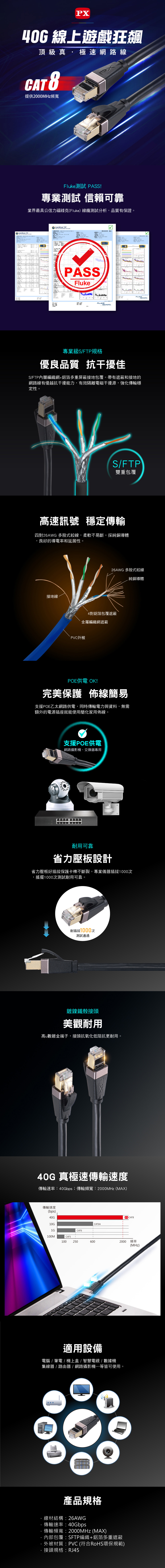 PX大通 LC8 CAT8高速RJ45網路線 數量